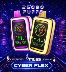 Con hasta 25.000 caladas aproximadas, el Muss Cyber Flex está pensado para usuarios que buscan comodidad, autonomía y un sabor constante sin necesidad de recargas ni mantenimiento.